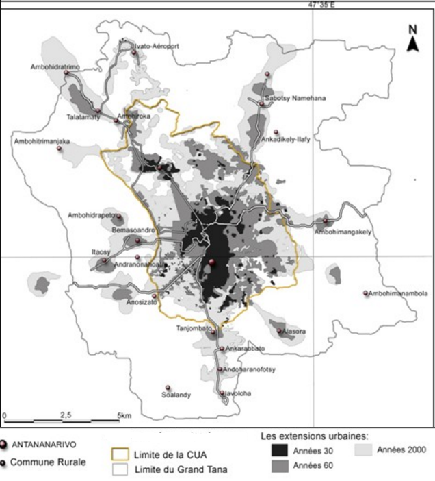 - La pression démographique face à la faiblesse structurelle des institutions publiques en matière de planification urbaine durable constitue un facteur bouleversant la physionomie des villes à travers la densification et l’étalement considérable des quartiers - spontanés - comblant des zones tampons et périphériques. Dans la ville d’Antananarivo, l’ampleur de cette problématique qui persiste actuellement a été considérable depuis l’indépendance de Madagascar en 1962 quand l’effort d’urbanisation formelle commença à se heurter à des vagues migratoires internes des populations. Cette étude analyse l’impact de la croissance de la population sur l’extension et l’occupation de l’espace urbain et ses impacts sur le logement et la dynamique d’urbanisation à la fois formelle et informelle qui a caractérisé cette ville à tel point que plus de 70 % de ses quartiers sont spontanés.